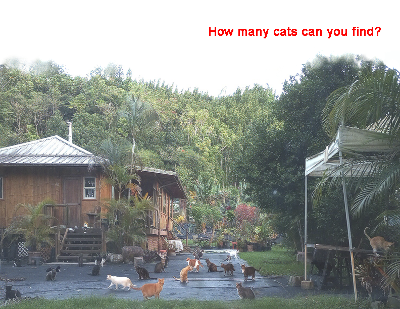 The cats have approximately 2 acres here, in Haiku, Maui Hawaii.